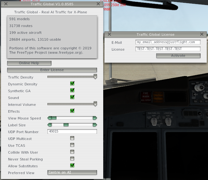 Once you've downloaded the file you will need to ensure X-Plane is closed and then copy the file to your <X-Plane>\Resources\plugins\Traffic Global\64 folder replacing the existing file. When you start X-Plane 11 and open the Traffic Global settings you should see the below: