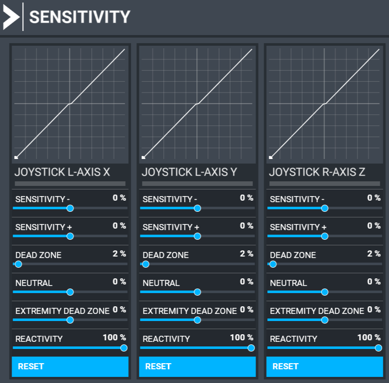 All Just Flight aircraft are developed using linear sensitivity curves. We therefore recommend all users have linear sensitivity curves set via MSFS Options > Control Options. Please see the following screenshot for reference: