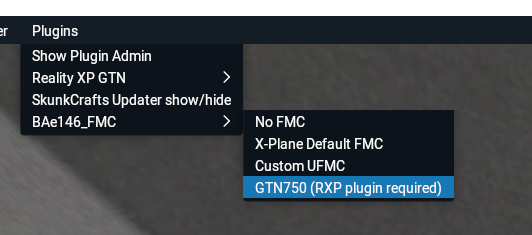 1) In the plugin menu select GTN750 (RXP plugin required)